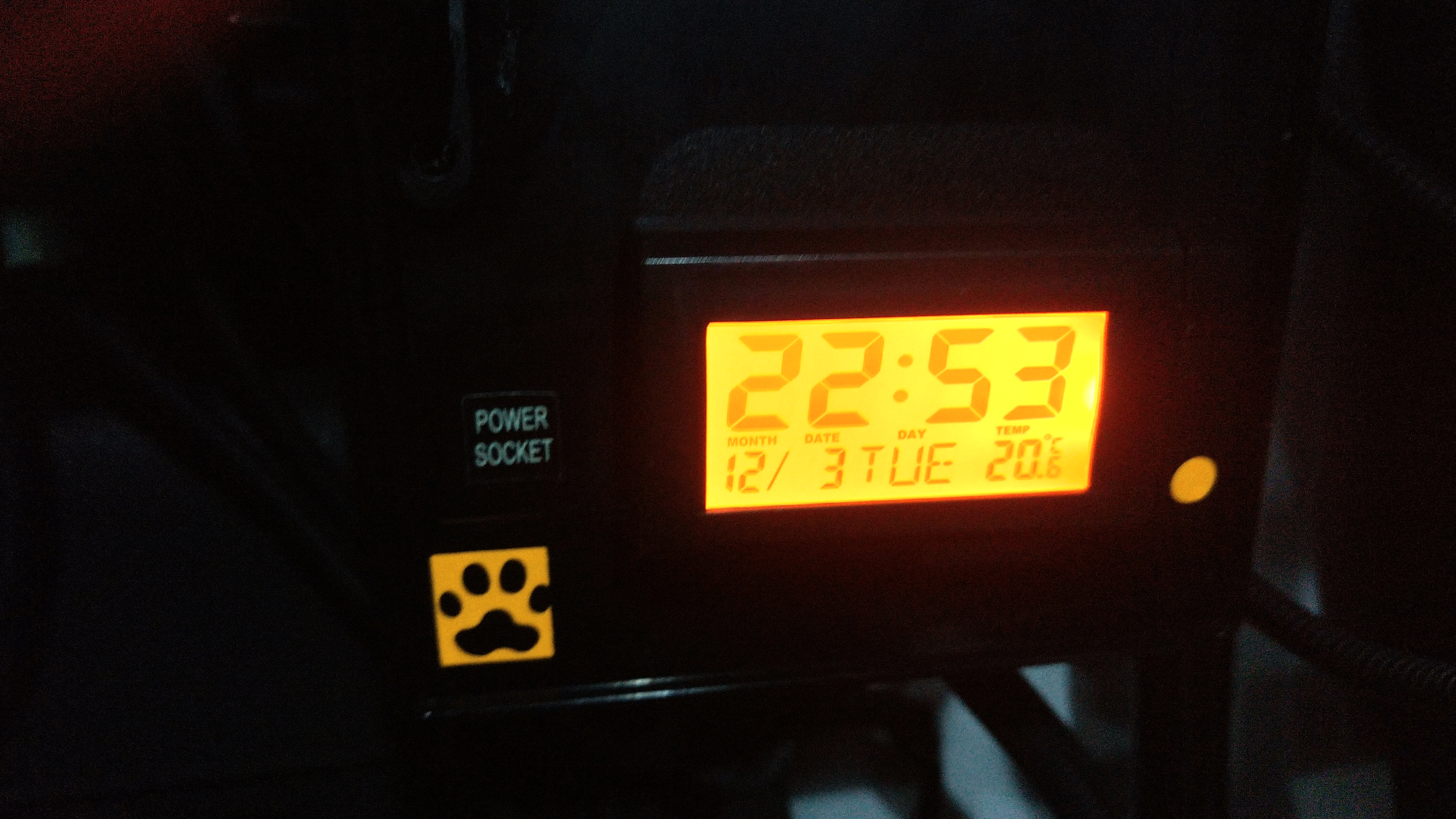 It became the staying under the first freezing point this year. I left for the nearest Roadside Station to test the convenience of the base of the microwave oven, but faced the different problem that we should already improve.使い勝手も良好テーブルが狭い問題の改善として台座を購入。昼過ぎに自宅でセットしてスペース確保を確認。そして、我慢できずに夕方に出発。最寄りとはいえ約100キロ離れた道の駅到着時にはすでに暗くなってリニアの橋脚はほぼカメラに映りませんでした。夕食準備でコンビニ購入のレトルト食品をずぼらに並べてもテーブルの上はまったく手狭にはなりませんでした。ただ、レンジを嵩上げしたため、Blu-rayと外気温計が陰になってしまいました。まあとはいえ台座設置によるスペース確保は大成功でした。問題はその後。気温はどんどん下がり、就寝時21時で外気温5℃。案の定、3時半に寒さで目が覚め、外気温は僅かにマイナスとなっていました。時すでにお寿司、テーブルではなく、防寒対策をしないと車中泊はできない時期になっていました。#Microwave problem 3