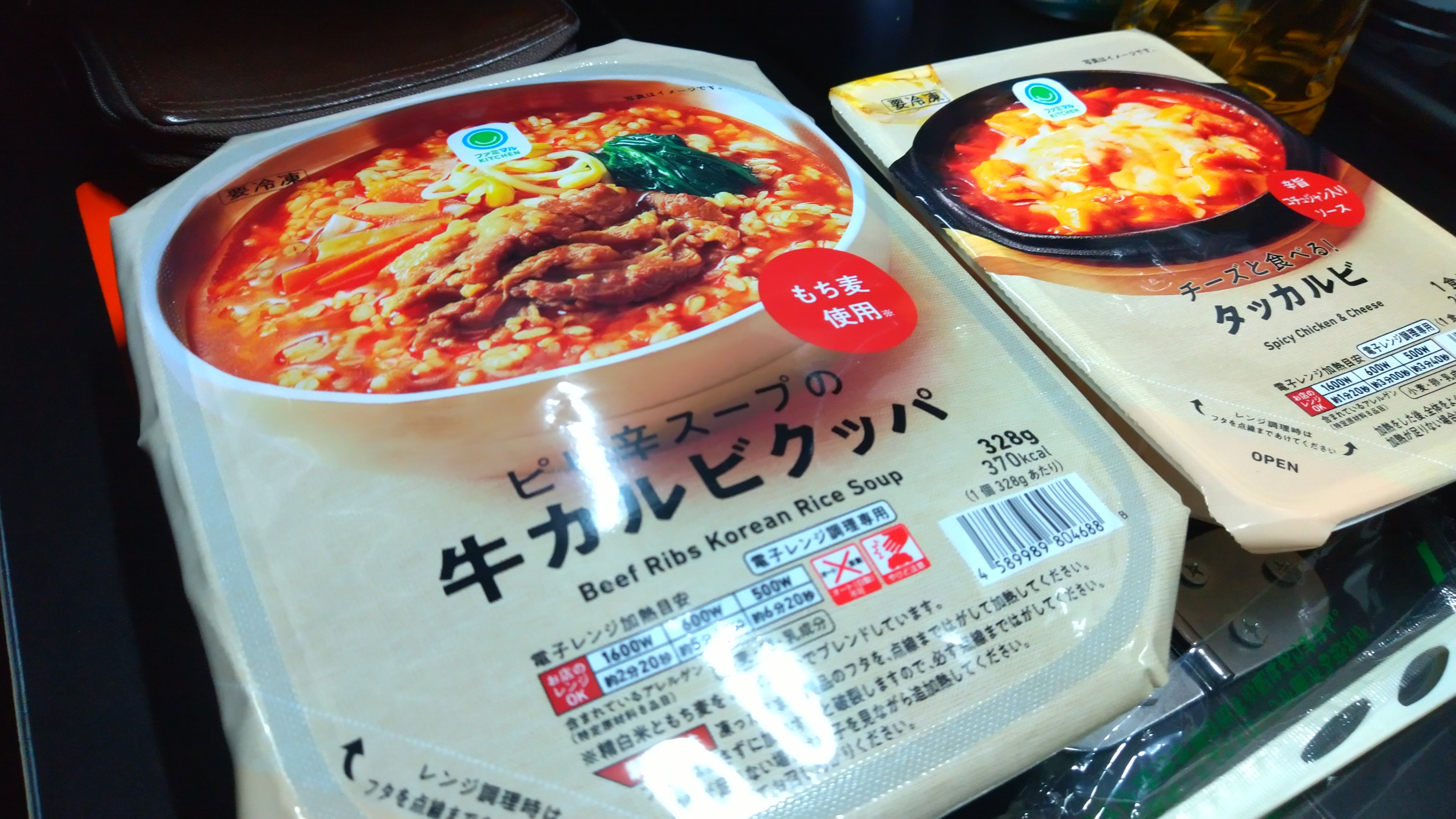 Various retort pouches are sold in the Japanese convenience store. As microwave ovens are piled up on the cabin, I warm it like a passenger plane and can eat. I chose the Korean food of Seven-Eleven this time.電子レンジ&レトルト食品我が家は電子レンジの便利さを最大限に活用して車中泊食を追究しています。献立を考えずに出発し、現地のお買い物も楽しみつつ、スーパーやコンビニで夕食と朝食のサンドウィッチ類を調達することが多いです。今回はセブンイレブンで韓国雑炊のカルビクッパとチーズダッカルビを購入しました。2つで700円ほど、寒かったのでとても温まりました。家から冷凍ご飯を持ってくれば満腹にもなれたでしょう。調理と比べるとレトルト食品の良いところは、残り汁が出ないところ、凝固剤も用意していますがまだ使っていません。現地には一切捨てないのが実践テーマなのでこれは守れます。うちは調理力がないので。