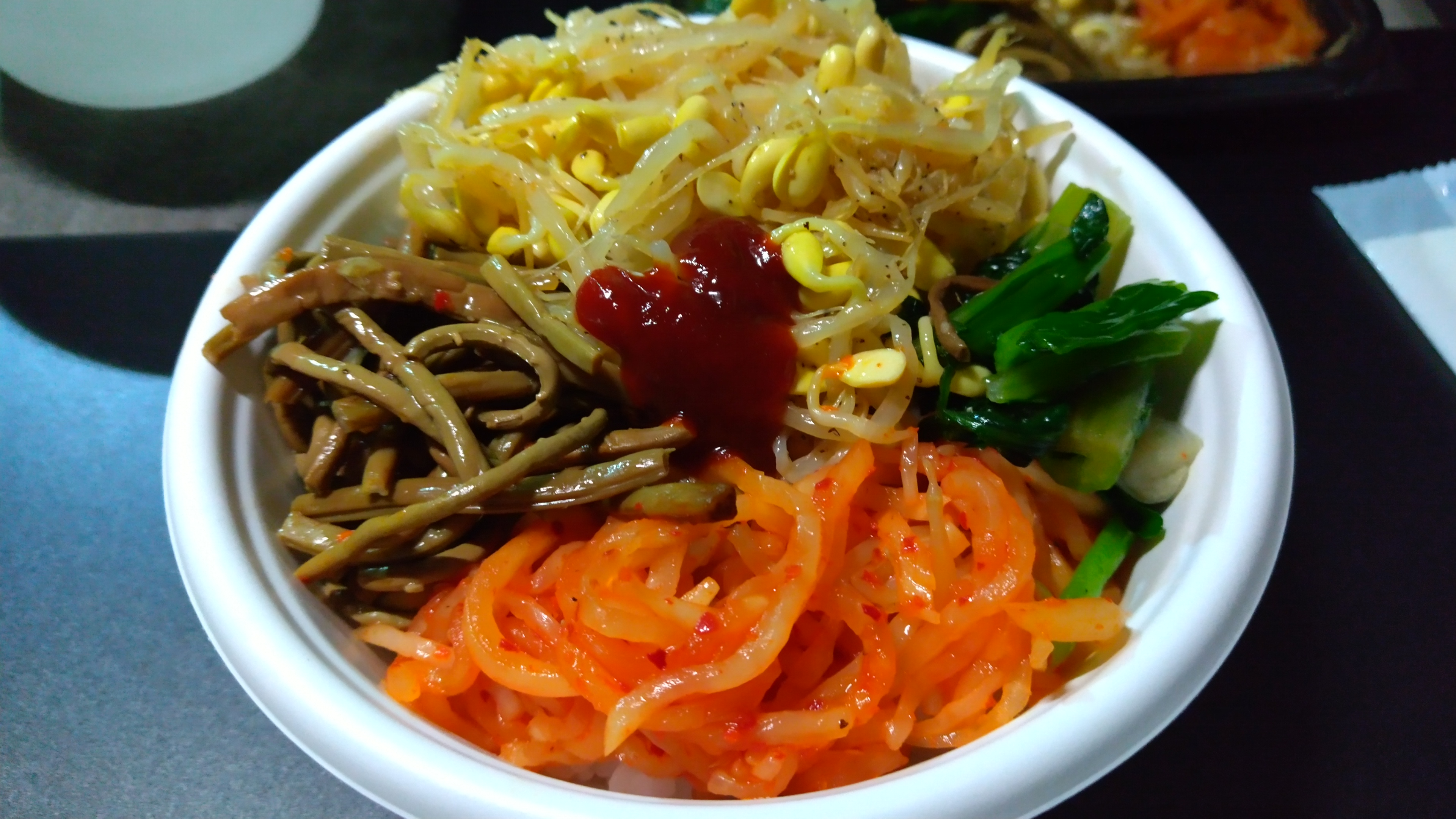 I am sorry by a quiet article, but this is dinner in CARCAMP of my home. I refrigerate rice and I can enter the air conditioner box and leave. I buy a side dish in a local supermarket and I warm the rice with a microwave oven and eat together.地味な内容で申し訳ございませんが、ビビンバ丼が今回の我が家の車中泊ディナーとなりました。レンチン調理を試行錯誤しておりますが、日常からしているご飯のラップ冷凍の活用をしてみました。カチカチの冷凍ご飯を折り畳み保冷バッグに入れて、現地のスーパーで何かちょうどいいものを選んで組み合わせて食べます。今回は割引品でもあり、好きなナムルセットを乗せてビビンバ丼となりました。野菜も食べられてヘルシーにまとまりました。主婦の知恵もお借りして、地味ではありますが、あまり背伸びをせず車上生活まがいの車中泊を楽しんでゆきたいと思います。房総にて累計29泊目