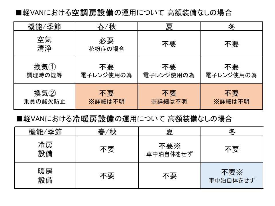 When I do car camping, I have never seen an article to warn it of danger whether it does not become the lack of oxygen state in a car so far. Therefore, probably it will be all right.The car loosens at the time of flood and is drained. The glass condenses dew when I get up by sleeping on the train in the morning. I am thinking the airtightness in the car to have possibilities to be considerably high.I want to measure it whether it does not really become the lack of oxygen state.■換気②について 車内の空調設備、酸欠防止について車内で調理用又は暖房用の器具を使用しない場合の酸欠について、注意喚起の記事を見たことがない。楽しいはずの車中泊で家族4人が酸欠で死亡など言う事件が起きていたら車中泊という活動ははやらなかったでしょう。しかし、洪水で流された車はいつまでも浮いているし、車中伯の朝のガラスは結露しているし、気密性が低いとは思えません。なのに酸欠にならないとは単純には信じられませんでした。調べてみると完全密閉にならないことが車両の要件になっているようでした。ストレスで短絡的に廉価であった一酸化炭素検知器を購入して車内に取り付けましたが、当然ながら用は足しません。探していた電池式ではありませんが、やっと見つけた最安値の二酸化炭素検知器を取り付けて実測しましたがこれが危険レベルなのかわかりません。「O2カプセル」によると700ppm で注意が必要。1000ppm以上でパフォーマンスの低下 2500ppm以上で頭痛、倦怠感、中尉散漫 3000ppm以上で呼吸困難、吐き気、視覚障害を引き起こすとされています。車内で計測したppm値では、確かに2000ppmを越えた段階でアラームが鳴りましたが、さらに危険レベルを超えていますが、実際には呼吸困難にもなりませんでした。技術者ぶって試してみましだか有意なデータをとることはできませんでした。これから再度、計測を続けてみたいと思います。一方、車内で調理用の火気を使用するカーキャンパーや汎用品で様々な取り付け方のあるFFヒーターを設置した場合は、一酸化炭素検知器(CO1 cheker)はあった方がよいかと思います。#Co2 checker ちなみに、我が家のか冬場の車中泊活動方針は以下のようにしました。オール電化車中泊の場合、冬場は調理器具と併用していると電気房器具は電力消費が激しすぎて1000Wクラスのポタ電では2時間程度で電力を喪失しました。また、100Wの電気カーペットは座っている時は快適ですが、就寝時に背中を温められると、個人差はあるかもしれませんが私の場合、寝付けないこともわかりました。このため、2000Wクラス以上/25万円以上の高額なポタ電等、高額装備を買わない場合は対処が難しいため、冬場は車中泊をしないという活動方針としました。ソロは除きますが。#Below zero CARCAMP solo 2