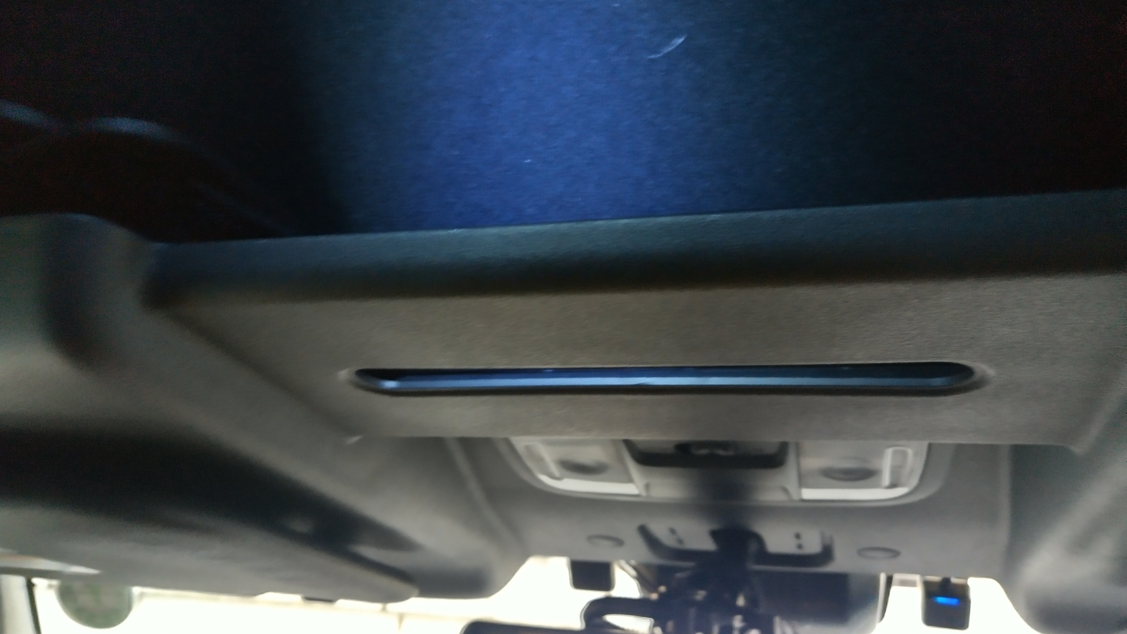 ルーフコンソールは運転席の天井に取付けられる棚で、ETCの次に装着率の高いオプションパーツだそうです。少ない収納力が補える上にティッシュが下に取り出せる優れものです。