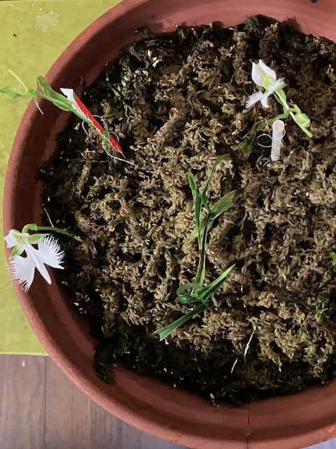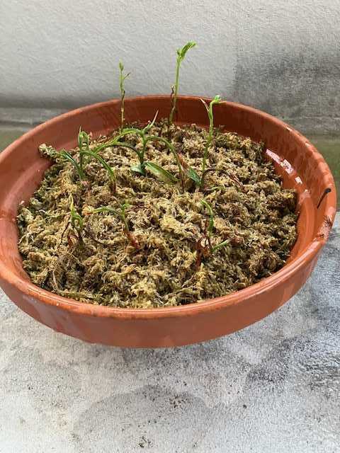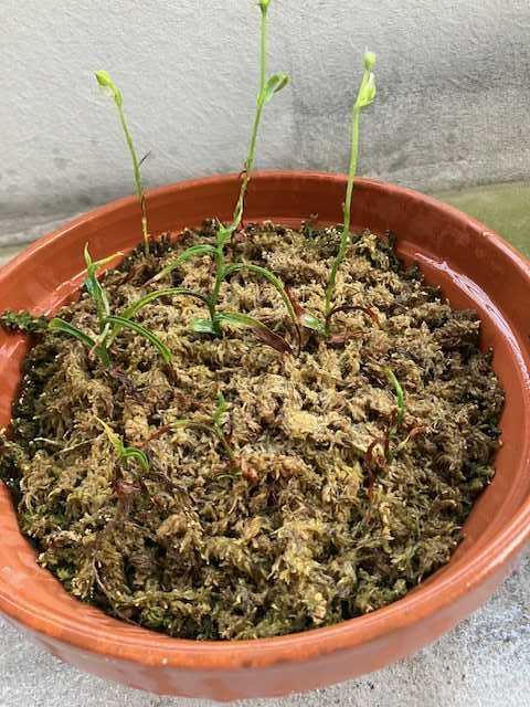先週ぐらいから、蝉の声が雨もあって、一時は静かになっていましたが・・・・天気が良くなりそうな時は朝から蝉の声も最高潮天気が判るのでしょうかね?このところたまに見るのが男の子が日傘!やはりなぁ、日差しがきついからねそれを思うと、高校野球の選手らは大変じゃ応援の人達も大変ですよねぇところで、あのサギ草最終的にはこの3つかなぁ?背丈が高い3つちと、痩せ気味ですが・・・・9つのうち8つになってこの三つ以外はちと駄目かもここから、他の葉っぱもいきなり大きくなるのか?水苔の中から、生き残りの潜望鏡が3つそれ以外は水苔を這うように葉っぱだけは広がっているけどなぁ一気に今の3つぐらいの高さになるのかなぁ?同じ時期からこれだけ違うのか・・・・なんか、先端の蕾から今にも花が咲きそうな?いやいや、まだ早い!それにしても痩せ型ですなぁ(笑蕾だけぽとって落ちそうで・・・・このところ、暑いので、水やりにせいをだしています(笑