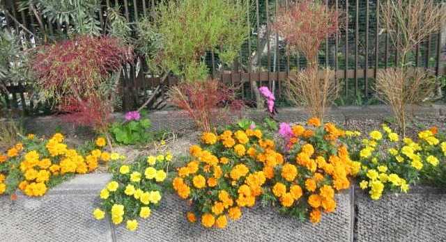 陽春園の中の小道にも お花が植えておられます。ジニプロフュージョン マリーゴールドも まだまだ 美しく咲いていました。