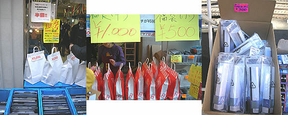 1.OAステーション・・福袋とジャンクノート半額の貼り紙・・(OAステーション)2.パレットの追加の福袋・・小500円、大1000円・・怪しい・・?(パレット)3.Wiiの無線コントローラーの受信機・・?300円・・(eコネクト) 1.恒例の2.5インチのHDDがたくさん・・(USHOP)2.1FではジャンクのPSPとデジカメ・・高い・・(USHOP)3.比較的まとも?なPSPはショーケースに・・7800円から(USHOP) 1.懐かしの柔道一直線・・のカルタ・・?(まんだらけ)2.X300等のベース・・CDD無いがAC付き!3150円・・う~ん(セルスターR新店?)3.じゃんぱら系で売られているT60/R60のバッテリー値下げ・・買いますかねぇ(じゃんぱら地下)