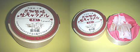 1.12粒入りのパッケージ2.フタを開けると当たり前ですがキャラメルが・・ 遅ればせながらカミさんが職場の同僚に頂いたとかで・・話題の花畑牧場の生キャラメル食べてみました。北海道の人でもなかなか手に入らないとか・・?何でも実家が北海道だそうで、普通に食べるために持ってきて・・お裾分けで貰っていて家でも話題になって・・主人も買い損ねてたの・・みたいな話しから・・それじゃ~・・と残りをくれたそうです。ありがとうございます。まだ6粒も入っていました・・感謝感謝!です。 さて食べた感じは口に入れると・・美味しいのですが・・スーと溶けて・・物足りない・・一杯食べられれば別でしょうが・・まぁどっちにしてもちょっと上品すぎて私向きではないかも・・。