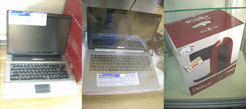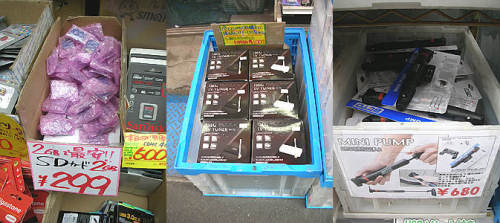 昨日は、01:00頃就寝・・起きたのは07:15・・なか なか起きられなくなってきました。いろいろ準備して、08:30家を出発。今日の東京は、曇、最高6℃、最低1℃・・雪が降らなければ良いですが・・。 09:40秋葉原着・・準備して・・まずUDX前のフリマへ・・特に無し。ついで中央通り・明神通りを渡り、ラジデパへ・・。 仮湘南通商・・開いていません。エレパ・・PanaのT4は無くなっています。SANYOの単三型充電池充電器・・200円。他は特に無し。回って湘南通商・・変わりません。一二三電機・・開いていません。上に登っておトイレ。ラジデパ入り口・・「ご自由に」、ありません。浜電機・ムーラン・・ありません。回って計測器ランドも特に無し。あきばお~弐号店・・変わりません。 千石電商・・ありません。明神通りを渡り、あきばお~零号店・・変わりません。まんだらけ・・何かあるのかぐるっと人が並んでいるので・・ショーウィンドウが見られません。並んで居る人は、シュラフだったりするので昨夜から・・?GENO・・変わりません。回ってあきばお~二店・・準備中ですが・・変わりなさそう・・。その他のお店はまだ開いていません。そのまま北上・・マツオ電機?・・変わりません。じゃんぱら元コンビニ・・特にありません。周辺まだ開いていませんので、中央通りを渡りじゃんぱら本店へ・・特にありません。回ってじゃんぱらBF・・Dellの19インチHDCP対応液晶・・3980円。1F・・7インチの防水ポータブルDVDプレーヤーが1980円。その他は特に無し。再び中央通りを渡り、じゃんぱら5号店へ・・ じゃんぱら5号店・・DVD/VHSレコーダーデッキが1980円・・安くなった物です・・。1FにFujitsuのi7液晶一体型PCが69980円。杉元ガレージ・・まだ開いていません。U-SHOP2・・特に無し。U-SHOP2F・・Fujitsuのi5ノート・・29800円。1F・・イージースパイク480円・・雪の日などに簡単に靴に装着できるらしい・・良いかも。図書館へ・・おトイレ。その後昌平通りを渡ってキャプテンへ・・特に無し。戻って・・icon2へ・・例のQTECのブルーレイレコーダーが一杯・・1500円・・リモコンが付いている感じ。他は特に無し。 取りあえず、買った物をアップします・・さて・・