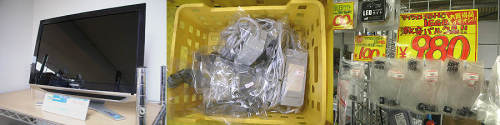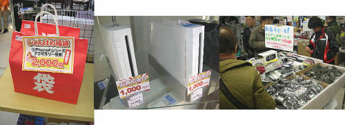 昨日は、01:30頃就寝・・起きたのは07:35・・寝 坊してしまった。いろいろ準備して、09:01家を出発。 今日の東京は、晴、最高8℃、最低0℃・・一気に寒くなってきました・・。 10:25秋葉原着・・準備して、かなり遅くなってしまったので、まず、じゃんぱらBFへ・・MITSUBISHIのHDCP対応液晶が4980円。処分市・・とのことでしたが・・あんまり変わっていません。1F・・UCCのコーヒーメーカーが3980円の1000円引き・・。回って本店・・ありません。中央通りを渡り・・ベルサール・・何だか御輿が出ています。ソフの掘り出し市などが行われるようですが、まだ入場できないみたいなのでスルー。明神通りを渡って、ラジデパへ・・。 仮湘南通商・・開いていません。エレパ・・LGの5インチBDDが2000円。PanaのT4が具付きで2000円と2200円。他は特に無し。回って湘南通商・・変わりません。一二三電機・・開いていません。上に登って、おトイレ。ラジデパ入り口・・「ご自由に」、ありません。浜電機・ムーラン・・ありません。回って計測器ランドも特に無し。あきばお~弐号店・・変わりません。今日は時間が遅くなっているので・・皆開店しています。秋葉スター・・今週も開いていません。ジャングル三号店・・例のデスクトップ・・Core2が1台あったのですが・・売れたようです。いくつか追加がありますが・・SONYの液晶一体型はPM・・です。FUJITSUの液晶一体型はCore2・・ちょっと迷いましたが・・帰りがけにまだ残っていて、その時点で買い物がほとんど無かったら考えようと・・。 角のお店・・ジャンク箱がありません。千石電商・・今度は花シリーズ・・が一杯。イオシス路地裏店・・CompaqのDC7900US・・VistaですがOSも付いて9980円。ジャングル本店・・全く何もありません・・。明神通りを渡って・・あきばお~零号店・・変わりません。まんだらけ・・タイミング良く零戦だらけ・・。GENO・・変わりません。ハードオフ・・特にありません・・残念。ドスパラパーツ館・・エレベーターが業者さんに占領されているので、中古2Fへ・・。東芝のCele550のノートがOS無しで9980円。3F上海問屋・・モーションセンサー内蔵LEDスティックライトが990円。これは面白そうです。 反対に出て、アールモバイル・REDZONE・あきばお~二店・・無し。反転して北上・・U-SHOP2・・ありません。U-SHOP2F・・正月の残りのゲーム類・・WiiがAC付きで2000円、X-BOXが2000円と1500円(ODD不良のようです・・)。イヤホンは100円になっています。1F・・特に無し。戻ってじゃんぱら元コンビニ・・ありません。U&J周り・・無し。だいぶ遅れましたが・・格安ゲット・インバース方面へ・・。 取りあえず、買った物をアップします・・さて・・