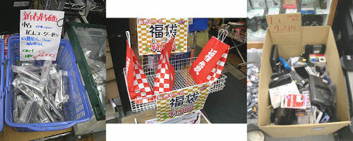 昨日は、お仕事・・早めに19:00頃帰宅して夕食を食べダラダラ正月番組を見ているうちに・・うたた寝・・。23:00頃一度起きるもやる気が起きず・・歯磨き・着替えで就寝・・。その割に起きられず06:05起床。いろいろ準備して、本日は盛りだくさんなので、07:38家を出発。今日の東京は、晴時々曇、最高10℃、最低1℃・・徐々に下がってきています・・。 09:00秋葉原着・・準備して、さて本日はいつも違い、正月恒例のジャンク祭りのためU-SHOP2Fへ・・。09:20頃着でだいぶ居ない人も居るので15番目くらい・・。ナップを置いて、まずは芳林公園のおトイレへ。その間・・セルスターR・秋葉特区は明日から営業のようです。舞い戻り・・さらにU-SHOP2・・開店予定が急遽お休みにしたとのチラシ。あきばお~二店・・変わりなし。その他はまだ開いていません。回ってGENO・・無し。舞い戻る。次いで自転車で大きく動き、明神通りを渡り・・ラジデパ・・も明日からの営業。ムーラン・・変わらず・計測ランドも明日より営業。再度戻ります。 10:13再度お出かけ・・神田明神へ・・お参りとお札を買い・・さらに去年のお札を返す。早いせいか空いています・・。10:32戻りました。次いでさらにお出かけ・・じゃんぱら元コンビニ・・iphone4系アクセサリー福袋2000円。他は特に無し。中央通りを渡ってじゃんぱら本店・・無し。じゃんぱらB1・・ありません。1F・・無し。大きく回って中央通りを再度渡り、じゃんぱら5号店・・ほとんど変わりません。tokkaバザール・杉元準備中・・。元に戻ります。10:58・・U-SHOP店長来ました・・で程なく11:05頃急遽開店・・2Fへ・・ 取りあえず、買った物をアップします・・さて・・