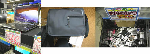 ここで本日は北上・・秋葉特区・・特に無し。セルスターR・・ソーラーガーデンライト、280円。他は特に無し。GFセカンド無し。MOQMOQ・・QTECのブルーレイプレーヤー・・無くなってます。e-コネクト・・ポータブルDVDプレーヤー・・無くなっています。他は特にありません。QC-PASS・・hpのノートPCdv7が液晶周りパネル付けるとバックライト消える正座用で44800円。さて本日の目的の一つ、先週の富士通の液晶一体型PCのODD換装のため、ジャンクのATA接続スリムスロットインブBD-REゲット。あんなにあったのに・・もう無くなりかけていました・・危ない危ない・・。他は特に無し。 U&Jmac、無し。アールガーデンもありません。Uターンして南下・・パレットタウン・・ありません。卸売りセンターセカンド・・無し。ルックイーストも無し。ZOA・・ありません。曲がってtokkaバザール・・無し。杉元ガレージ・・奥のお店出ていませんが・・特にありません。U&J周り・・無し。あきばお~八号店・・充電式ドライバー・・1800円がちょっと気になる。格安ゲット・・特に変わりなし。インバース・・外回りOLYMPUS PENの純正カメラバックが1000円。その他は特に無し。店内・・デジカメが500円均一になっていましたが・・既に外人部隊の方、他が一杯抱え込んでいて・・残りは大した物無し。その後何回か追加はありましたが・・低スペック物ばかり。状態の悪い物はカウンター前に100円であり、RICOHのR3がありましたが・・今更?それにあんまり動く気がしないのでスルー。 GFTOP・ツクモアウトレット館・・無し。インバース2・・無し。 ハードオフ・・う~んありません。三月兎本店・三号店・オレンジ・・店頭のみですが特に無し。ドスパラパーツ館・・上海問屋・・ありません。2F中古フロアも変わりなし。反対に出て、アールモバイル・REDZONE・あきばお~二店・・無し。回ってまんだらけ横で古本市・・やってます。マンガですが安くて良さげのもあるようですが・・人が多いのでスルー・・。明神通りを渡りジャングル本店へ・・何だか化粧品が50円だったり、各種家電がジャンクで安かったり盛りだくさんですが・・特に欲しい物は無し・・もうだいぶ狩られたみたいです。それでも追加が次々あるのですが・・人が多くて・・ほとんど取られています・・。諦めて・・イオシス路地裏店・・変わりません。千石電商各店をさら・・と見て無し。 引き続き、買った物をアップします・・