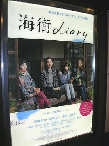 今月も追われるように例の株主優待ポイント+親和会の映画券の消化・・相変わらず一人で109へ・・。 さて今日の映画は「海街diary」です。これまた大々的に宣伝されている映画です。ほのぼのとして決して大きな起伏のある映画ではないのですが・・まさに見ていて心地よい映画でした・・。しかし舞台が鎌倉の古びた屋敷といって良いような趣ある家・・こういうところに住みたいですよねぇ・・庭の梅の木は樹齢50年以上・・とは・・。 いつもとちょっと違う雰囲気のしっかりものの長女役の綾瀬はるか、奔放さがぴったりの次女役の長澤まさみ、これまた変わり者をテンポ良くこなしていた三女役、夏帆、そして一人異質の環境にとまどいを見せる異母兄弟の四女役?を達者にこなしていた広瀬すず・・。いずれも芸達者な主人公が淡々と押さえた演技で良い感じ・・。それに出ました怪優樹木希林・・相変わらずですねぇ・・さらにキムラ緑子、大竹しのぶ、リリー・フランキー・・といったこれまた怪優と言っても良いベテランが脇を固め、さらに私たち世代の永遠のあこがれ風吹ジュンが重要な役どころを演じているのもうれしい・・。まさに日本映画の一角を彩っている映画です・・。 YAHOO映画より『解説:ベストセラーを誇る吉田秋生のコミックを実写化したドラマ。鎌倉に暮らす3姉妹と父親がほかの女性ともうけた異母妹が共同生活を送る中、さまざまな出来事を経て家族の絆を深めていく姿を追う。メガホンを取るのは、『そして父になる』などの是枝裕和。テレビドラマ「八重の桜」などの綾瀬はるか、『潔く柔く きよくやわく』などの長澤まさみのほか、夏帆や広瀬すずらが共演。実力派女優たちが繰り出す妙演はもちろん、舞台となる鎌倉の美しい四季の風景も見どころ。』『あらすじ:鎌倉で暮らす、幸(綾瀬はるか)、佳乃(長澤まさみ)、千佳(夏帆)。そんな彼女たちのもとに、15年前に姿を消した父親が亡くなったという知らせが届く。葬儀が執り行われる山形へと向かった三人は、そこで父とほかの女性の間に生まれた異母妹すず(広瀬すず)と対面する。身寄りがいなくなった今後の生活を前にしながらも、気丈かつ毅然と振る舞おうとするすず。その姿を見た幸は、彼女に鎌倉で自分たちと一緒に暮らさないかと持ち掛ける。こうして鎌倉での生活がスタートするが……。 』『映画レポート:「海街diary」生きづらさを乗り越えた先にある光を照射した人間賛歌 綾瀬はるか、長澤まさみ、夏帆、広瀬すず。この4人が並び立つだけでスクリーンが華やぐ。昨今の日本映画ではなかなかお目にかかれない美のそろい踏み。さて、是枝裕和監督はこの旬の素材をいかに料理するのか。メインは長女・幸(綾瀬)の自戒と、四女・すず(広瀬)の自責からの解放だった。 幸、佳乃(長澤)、千佳(夏帆)の3姉妹は15年前に家族を捨てた父親の悲報を聞き、参列した葬儀会場で異母妹の中学生・すずと出会う。すずの母も既に亡く、義理の母に当たる3人目の結婚相手と暮らしていた。見かねた幸は「一緒に暮らさない?4人で」と鎌倉での同居を提案する。 食卓はさらににぎやかになり、姉たちの愛情を受けたすずは一見、新たな生活になじんでいるように映る。だが幸が、なじみの食堂の主人・さち子(風吹ジュン)に「あの子、よく笑うのよねえ」と言われた直後のハッとした表情が実に印象深い。家では見たことのないすずの一面に、妹が心を開いておらず、自らも奥底にわだかまりがあったことを知る大きな転換点として余韻を残す。 そして父親に続いて家を離れ、祖母の七回忌に突然現れた3人の母(大竹しのぶ)との再会によって幸は積年の思いを氷解させ、すずもまた不倫相手の娘という苦渋を吐露する。それぞれの心の移ろいを、みずみずしい風景に溶け込ませるように静かに、少しずつだが確実に積み重ねていく。 幸は、すずを父親との思い出の詰まった高台に連れて行く。そこで初めて互いの気持ちを受け入れ合って見せる心からの笑顔は実にすがすがしい。その過程においては、男運は悪いが常に前向きで明るい佳乃、ひょうひょうとしているようで冷静に状況を好転させていく千佳の存在も絶妙な“隠し味”となって姉妹のきずなをつないでいる。 人が生きること、死ぬことと真摯に向き合い続ける是枝監督が、生きづらさを乗り越えた先にある光を照射した人間賛歌。全編が優しさに満ちあふれている。(鈴木元)』