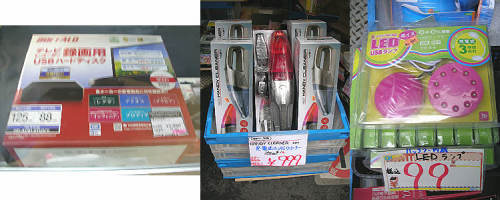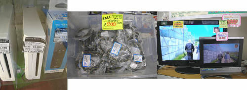 秋葉原他での巡回150530買い物中に気になったものです・・1.NintendoのDSi・・が税込み1980円・・全体的なキズや使用感があり、タッチペン1本欠品らしいですが・・いつの間にやら安くなったんですねぇ・・(じゃんぱら1F)2.MITSUBISHIの24.1インチ液晶モニター、MDT241WG・・1920x1200(WUXGA)/HDCP対応/HDMIx2・・7980円・・フレーム・液晶キズと電源ボタン反応鈍い・・らしいですがお安い・・(じゃんぱらBF)3.細々と地味に側面でコンテナ5個ですが・・ジャンク市をやっていました・・ガサゴソしたら、USB-SATAアダプターがあったのでゲット・・税込み300円・・(あきばお~伍号店)1.SONYのデジタルビデオベビーモニター、NTM-V1・・別の部屋に居ても赤ちゃんの声と画像で確認。中古税別7777円・・何かに使えそうです・・(GENOQCPASS)2.lenovoのモニタースタンド、Easy Reach Monitor Stand・・税別1890円・・もう少し安くなると・・うまくすればDellのが500円位で見つかることもあるので・・(GENOQCPASS)3.SONYのHi8ビデオデッキ、EV-MS9000?・・チェック時再生しなかったようですが・・それでも税込み5400円・・お高いですねぇ・・(秋葉原ハードオフ)1.Skype対応スタンド付きUSBマイク・・決行本格的な感じがしますが・・どうなんでしょう・・?(ドスパラパーツ館3F上海問屋)2.FUJITSU、docomoのタブレット、ARROWS Tab F-05E・・10.1インチ/4コア/32GB・・細かいキズはあるようですが。。大キズは無いとのことBランkで付属品一部欠品が、税別11900円、欠品無しが税別12800円・・あちらのは、新品ですが・・7000円ほどお安い・・(ドスパラパーツ館2F中古フロア)3.電池式超音波ネズミ防除機2個セット・・税込み1980円・・ペットには無害とのことですが・・どうなんでしょう・・?個人住宅ではそうネズミはいないようですが、オフィスなどでケーブル切断などの問題が出てきているらしいので・・まだ需要はある・・?(格安ゲット)