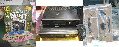 秋葉原他での巡回150530買い物中に気になったものです・・1.ウォレットニンジャ・・薄い金属板のようなものに18種類のツールが盛り込まれている・・そうです・・便利かも・・税別380円・・(U-SHOP1F)2.TMYのブルーレイプレーヤー、BDVP-C2106・・さてどこまで動くんでしょうか・・?本体のみで税込み1500円・・(杉元ガレージ)3.マスプロのUHFアンテナ・・税込み980円・・結構良いかも・・(アールガーデン)1.ボックス型ファイルケース・・5個要りで税込み200円・・文房具系がこのところ入ってきているようで・・(アールガーデン)2.日付スタンプ・・1個どれでも税込み100円・・面白いですが・・使うかというと・・思いつかない・・(アールガーデン)3.例のXacti・・最後の1個・・本体のみですが780円に値下げ・・ただし未チェックジャンクです・・前に飼ったのはOKでしたが・・(icon2)1.今週のセール・・土曜が「じゃんけんに勝ったら20%引き」、日曜が「タブレット祭り」・・詳細不明ですが・・日曜がよかったですが・・行かれません・・残念・・(PC-EYES)2.DellのノートPC、Latitude E5520・・Corei5 2.6GHz/2GBMEM/250GBHDDWin7Pro32・・BT完全消耗・・で税込み25999円・・良いですねぇ・・(PC-NET)3.Panaの5型ポータブルワンセグテレビ、VIERA SV-ME750・・液晶に薄いキズあり、やや使用感あり、USB・外付けスタンド・SDカード欠品・・税込み6980円・・メーカー品なので・・(じゃんぱらDスタイル)