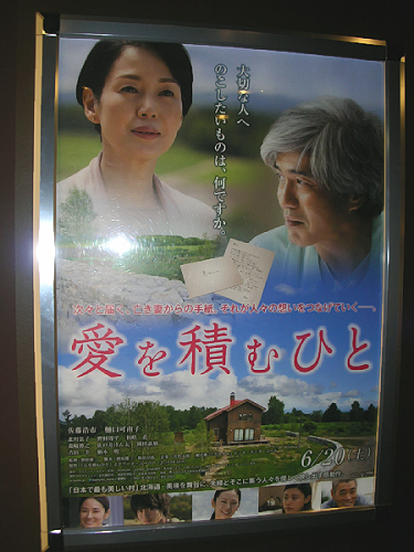 今日も追われるように例の株主優待ポイント+親和会の映画券の消化・・相変わらず一人で109へ・・。 さて今日の映画は「愛を積むひと」です。最近邦画づいています。これまた北海道の大自然といい、われわれ世代へのスマイルといい、心地よい時間が流れます。予告編なんかで大体の筋は分かっていたので・・大体想像付いたものの、見事に泣かされてしまいました。 佐藤浩市と樋口可南子がしっとりと夫婦を演じています・・佐藤浩市が、親父さんに負けずいつの間にやら渋い良い役者さんになりましたねぇ・・。一方樋口可南子はこういう役は磐石ですね・・いつぞやの渡辺謙との夫婦役も見事でしたし・・。野村周平・杉咲花の若いカップルが初々しくてほほえましく・・また柄本明・吉田羊の意外性のある夫婦も面白かった。難を言えば娘役の北川景子がちょっと違和感有りですかねぇ・・がんばっていて好きな女優さんなんですが・・あの顔立ちで一人浮いていた感じで損していました。前回の「海街diary」と同様に、静かに流れるような邦画をみるのも、癒されて良いですねぇ・・。 YAHOO映画より『解説:エドワード・ムーニー・Jr.の小説を基にしたヒューマンドラマ。北海道で第二の人生を過ごそうとする夫婦が、改めて自分たちの愛情や絆を見つめ直す姿を追い掛けていく。メガホンを取るのは『釣りバカ日誌』シリーズなどの朝原雄三。佐藤浩市と樋口可南子が主人公の夫婦にふんし、その脇を『悪夢ちゃん』シリーズなどの北川景子、『日々ロック』などの野村周平らが固める。温かな物語に加え、北海道の大自然と美しい四季の移ろいを捉えた映像も必見。 』『あらすじ:東京の下町で営んでいた工場を閉鎖し、残りの人生を北海道で過ごそうと決意した篤史(佐藤浩市)と良子(樋口可南子)の夫婦。かつて外国人が暮らしていた家を手に入れて暮らす二人だが、仕事一筋だったゆえに篤史は手持ちぶさたになってしまう。そんな彼のために良子は、家を囲む石塀作りを頼む。しかし、良子が以前から患っていた心臓病を悪化させて他界してしまう。深い悲しみに沈む篤史だったが、石塀作りを手伝う青年・徹(野村周平)との交流や、娘・聡子(北川景子)との再会を経て、前を向くようになる。 』