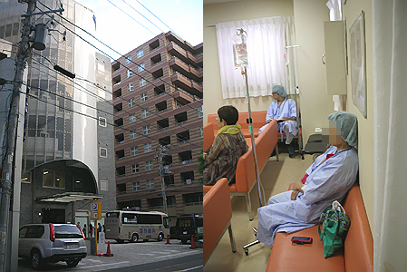 大きな病気をしたことのないカミさんが・・メガネを作りに行ったら視力が出ない・・本当はコンタクトを作り直しに行ったときにおかしいので眼科に行くように言われていたそうで・・もうかれこれ一年近く前らしい・・ さすがに心配になって・・行ってみたら・・診断は「網膜はく離寸前・・黄斑分離」とかやらで、白内障も結構進んでいるとのこと。このままでは遅かれ早かれ失明・・するとのこと。これはえらいことです・・。 今まで手術なんか受けたことの無い怖がりのカミさんが一大決心して手術を受けることに・・。がんばれ!カミさん! ということで先日6/1(月)手術が行われました・・。私も付き添いでてんやわんや・・さて・・(今日は左目で一ヵ月後に右目をやるそうで・・)。※その関係で、ここ数日大幅にブログのアップが遅れすいませんでした1.ここが手術を受けた「深作眼科」です。2.手術待合室で待つカミさん1.手術後、うつ伏せで空気の力を借りて網膜を定着させるそうで、うつ伏せ寝用のレンタルのプラスチック台とU字型の枕を使います2.こんな感じで寝ます・・おトイレや食事以外は、これから4日間程はこの姿勢で寝ます・・シンドそう・・3.気持ち悪くないということで、19:00過ぎ?には夕食が運ばれてくる・・食事中もできるだけ下を向いて・・。これは辛そう・・