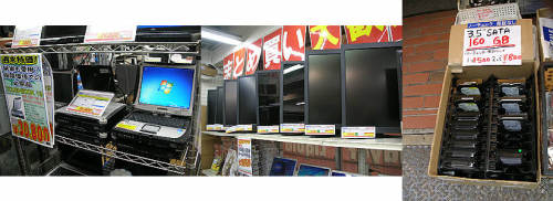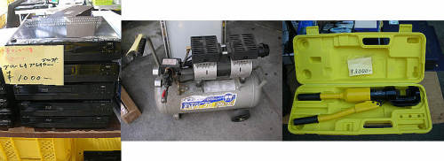秋葉原他での巡回151011買い物中に気になったものです・・1.Panaのタフブック、TOUGHBOOK 19・・Corei51.2GHz/2GBMEM/160GBHDD/10.4タッチパネル/ODD無/OS無・・税抜き30800円・・なかなかお高い・・(U-SHOP2F)2.NANAOの医療用モノクロモニターが大量・・たぶんデジタル化したレントゲンなどを見る専用のモニターなのでしょうねぇ・・21.3インチ、20.8インチなどが税抜き9800円・・(U-SHOP2F)3.3.5インチSATA160GBHDD・・1個500円、2個で400円・・未チェックジャンク扱いなので微妙・・(icon)1.SONYのオープンリールデッキ、222L・・テープ再生はしたようですが付属のテープはカビが生えているようです・・。そうVHSの古いのにもカビ生えますよねぇ・・磁気テープの上でよく生きていけるものだと感心します・・税込み7560円・・(秋葉原ハードオフ)2.SONYのHDD/DVDレコーダー、AX75・・DVDの再生は確認したようです・・その他未チャック・・税込み1620円・・(秋葉原ハードオフ)3.木下理化のミニポンプ、AP-TLC・・動いたようです・・面白そうですが・・税抜き2000円・・(マルツ電気?)1.湯山製作所の電子はかり、CS-350・・こちらも一応動いたようです・・税抜き2500円・・(マルツ電気?)2.電球ソケット・・直接コンセントに接続するようです・・300円・・ちゃんとON-OFFスイッチもついていますし・・これは面白そうです・・(パレックス?)3.例のワンセグチューナーが税込み300円に値下げ・・Fコネクターアダプターは無いとのことです・・(パレックス)