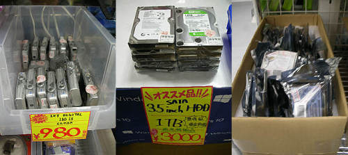 秋葉原他での巡回151017買い物中に気になったものです・・1.CanonのIXY DIGITAL 110IS・・やっと根付けがおかしいのに気づいたか・・大幅値下げで税込み980円・・(PC-NETジャンク通り店)2.SATA3.5インチ1TBHDD・・各社税込み3000円・・保証は無いようですが・・お安いかと・・(PC-NETジャンク通り店)3.HITACHIのIDE1.8インチ20GBHDD・・税込み300円・・40GBかと勘違いして今更ですが・・1個購入・・(マーシャルリアル1号店)1.懐かしの黒電話、601型電話機501-A2・・動作未確認のジャンクで税込み1980円。そういえば確か家にも薄緑の電話機があったなぁ・・まだどこかにしまってあると思うけど・・(アールガーデン)2.リサイクルアルカリ電池・・単四・単三とも10本いり100円・・ちょうど欲しかったので物色しましたが・・肝心の単三は売り切れ・・残念・・(秋葉特区)3.NBの12V/1.5A?ACアダプター・・コンセント部分は脱着交換型・・付属しているのは日本使用のもののみ・・税込み100円。ポータブルDVD用に1個ゲット・・(マーシャルリアル2号店)1.ジャンクのHDDケース類・・2.5インチ、診断機能つきの3.5インチ等々・・診断機能つきが面白そうだったのでゲット・・いずれも税込み300円・・(マーシャルリアル2号店)2.SONYのminiDVハンディカムビデオカメラ・・各種いずれも1000円・・BTは別の箱で売ってました・・(icon)3.バッテリーのコンテナにはハンディカム用のBTの他、SANYOのXacti用などのBTも300円で幾つか売られていました・・(icon)