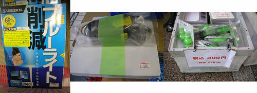 秋葉原他での巡回151017買い物中に気になったものです・・1.ジャングルのブルーライト削減・・のソフト・・仕組みがあんまり良くわかりませんが・・削減率は69%と高くないですが、やらないより良い・・?効かないというウワサも聞きましたが・・どうなんでしょう・・?(PC-EYES)2.TOSHIBAの7インチ?ポータブルDVDプレーヤー、SD-P71S・・ジャンク?CPRM対応?ACつきで980円・・(PC-EYES)3.例のレモン搾り器・・税込み300円?・・それとも後ろのカバー類が300円?・・(IKESHOP)1.DellのノートPC、Latitude E6220・・Corei52.5GHz/1GBMEM/0GBHDD/外観ボディアキ?・・どうなんでしょう・・?税込み9900円・・もう少しお安いと・・(PC-NET)2.PanaのノートPC、レッツノート CF-F9・・Corei52.4GHz/2GBMEM/320GBHDD/DVD-Sマルチ/Win7Pro32・・HDDリカバリ・・税込み21999円・・(PC-NET)3.ZTEのソフトバンク仕様ポケットWiFi。203Z・・本体キズありジャンク保証無し、本体のみで・・税込み200円・・何でもモバイルBTとしての使い道もあるらしい・・(遠いじゃんぱら)1.Panaのブルーレイレコーダー、DMR-BRT210-K・・500GBHDD/ダブルチューナー/3D対応/外付けHDD非対応・・付属品は大体揃っているようですがB-CASは無し・・2.SONYの液晶一体型PC、VAIO JシリーズVPJ139FJ/B・・Corei52.66GHz/4GBMEM/1TBHDD/BD-R・RE/フルHD対応21.5インチ液晶/3波チューナー/Win7home64/Office2010・・B-CASが無いとして・・リモコンが無いような・・税込み51800円・・(じゃんぱらDスタイル)3.リモコン箱に入ってたジャンクリモコン・・300円・・何用でしょう・・?(杉元ガレージ元店)