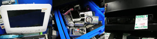 秋葉原他での巡回151025買い物中に気になったものです・・1.SONYのハイブリッドビデオカメラ、HDR-VX20・・通常価格8500円がセールで税抜き6500円・・動作OK、保証3日間・・(ジャングル三号店)2.SHARPとVICTORのDVD/VHSレコーダー・・HDDがあるかどうかは未確認・・1000円・・リモコンはなさそう・・(エレパ)3.NECの液晶一体型PC、PC-VW978CS01・・i72.8GHz/8GBMEM/1.5TBHDD/BD-R・RE/フルHD対応23インチ液晶/3波チューナー/OS無?・・税込み39800円・・欲しいですねぇ・・(PC-NET)1.CANONのプリンター、PIXUS MG3530・・付属品・箱なし・・で税込み2000円。インクも無ければちょっときつい・・ですねぇ・・(じゃんぱらDスタイル)2.KINGJIMのミーティングレコーダー、MR300・・4つのカメラで360度録画・・定価税抜き3300円がちゅうこで税込み17800円・・さすが隙間産業・・面白いこと考えましたねぇ・・でも試すにはちょっとお高い・・(じゃんぱらDスタイル)3.あのDramoni・・がついに599円・・箱入りジャンク・・付属品は全部揃っているのだろうか・・?(森のジャンクショップ)1.例のFUJITSUの7インチ?タブレット・・1999円に値下げ・・さすがにちょっと売れ行き悪そう・・(森のジャンクショップ)2.寒くなってきたので・・冬恒例のアイテム・・カセットガスボンベストーブ・・2500円・・去年多量に出ていたやつと同じですねぇ・・(杉元ガレージ)3.docomoのACアダプター、04・・AC-MicroUSB・・税込み500円・・これは良さそうですが・・(じゃんぱら澁谷道玄坂店)