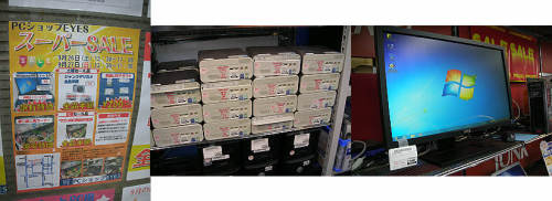 秋葉原他での巡回151003買い物中に気になったものです・・1.GREENHOUSEの7インチDVDプレーヤー、PDV7W-BK・・CPRM対応で電池駆動・・税込み2980円・・PC-EYESで買ったものと同じような感じ・・電池駆動はうまく使えば思ったより使いやすい・・(じゃんぱら1F)2.FUJITSUの液晶一体型PC、FMV-ESPRIMO FH77/ED・・Corei7 2.2GHz/8GBMEM/2TBHDD/BD-R・RE/フルHD対応23インチ液晶/Win7home64/Office2010/3波チューナー・・通常税込み67800円がセールで10000円引き・・(じゃんぱらBF)3.単三ニッケル水素充電池・・200円・・2500mAh・・安いんだろうか・・?(マルツ電気)1.各社5インチ内臓用DVD-Sマルチドライブ・・285円・・ただしIDE/ATAPI接続・・(GENO)2.スペースシャトル・・宇宙から帰ってくるという画期的技術だったのですが・・惜しまれつつ引退。そのうち知らない人が出てくるんでしょうねぇ・・(まんだらけサイドウィンドウ)3.在庫処分のためスーパー特価の中に特殊な?ライトが・・ユーライン・・100円・・器具が無い・・(千石電商)1.一段大きなLEDテープが1000円ジャンク箱で光っていました・・かなりの照度・・(ラジデパのLED屋さん)2.衣替えか大幅にリニューアルしていて・・ビクターの巨大なマスコット犬が表に出ていました・・(ラジデパ地下の音響屋さん)3.ファミコンやスーパーファミコンのソフトが100から300円コンテナに一杯・・(ラジデパ電気屋ケンちゃん)