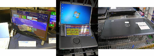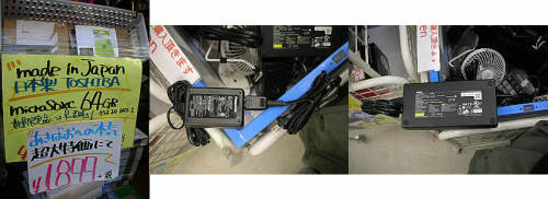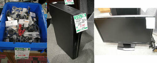 秋葉原他での巡回151219買い物中に気になったものです・・1.2個で100円箱の中に変換プラグがありました・・海外3カ国のプラグを日本のプラグに変換するもの・・安くてよいかも・・(PCキャプテン)2.東芝のDynabookR700系?ポトリ・・小さいのが2800円、大きいのが3000円・・コネクターの違い・・?3.うわさのマーシャルのUSB外付け3.5インチHDDケース・・AC付きで300円・・安いのですが・・(マーシャルリアル1号店)1.またまた例の32GBSSDが一杯出ています・・一応カゴにはNO CHECKと書かれていますが・・例のプログラムでも解決しなかったのか・・?それとも本当にノーチェックなのか・・?確か1000円・・(icon2)2.各種リモコン・・Wizzが多い・・欲しいものがなくて残念・・(GFセカンド?)3.パチスロマシーンがで~んと鎮座していました・・使えるのか分かりませんが・・12000円と思ったよりお高くない・・(U&Jmac)1.例のFUJITSUのシンクライアントPC、FMV-TC5230・・最後の1個・・が通常価格税込み1980円が最終特価で税込み500円・・(アールガーデン)2.NECのi5液晶一体型PC・・Corei5 2.66GHz/4GBMEM/250GBHDD/DVD-ROM/19インチワイド液晶1440x900/Win7Pro32・・税込み19800円・・送料無料だそうです・・安くて良いかも・・(アールガーデン)3.ZALMANのusb充電ポート付きLEDデスクライト、ZM-LS300T・・タッチ方式で200~1400ルクスまで明るさの調節が可能・・とのこと・・税抜き2480円・・ちょっとお高い・・(パレットタウン)