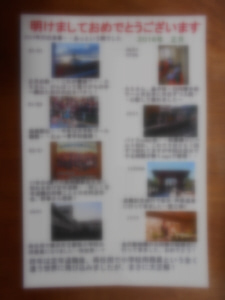 ※今日は恒例行事の備忘録を優先させました・・すいません。「秋葉原他お買い物日記」の続きは明日以降アップ予定です。 昨年に引き続き・・今年も年末に色々事件が連続し・・その間を縫っての年末の大仕事・・年賀状を書く季節になり、一週間ほど前から少しずつ始めていたのですが・・一向に進まず、結局昨年より同様12/20深夜に何とか完成です(投函は12/21)。 今年もいつもの様に今年の主な出来事をこのブログから拾い上げ、USBメモリーから写真を集めました・・今年は優雅になるはずが・・再任用で全く別の世界に飛び込んで仕事を始めたのもあって、旅行は1回だけ、大きな買い物もなく・・出来事が少ないです・・。来年は少し落ち着いて・・旅行やお買い物があると信じたいですが・・どうでしょう・・? 昨年に続きジャストシステムの「楽々はがき」というソフトを使ったので楽チンでした・・が今年も一年ですっかり使い方を忘れていたので・・大変。特に今年は新しい職場の皆さんにご挨拶を兼ねて年賀状を送るので、住所録から追加で大変。さらに印刷をしてビックリ・・新しく追加した人たちの宛名で・・名前はそこそこ大きく印刷されているものの住所が小さい・・印刷終わってから気が付いたので・・新しい50人文位を全部印刷し直す訳にもいかず・・少々みっともないですが・・ご容赦あれ・・。来年はもう少し早く始めて・・しっかりやらねば・・。 さて完成したのは、以下のものです・・内容が今の段階であまり分かるのも何なので・・小さく、ボカしました・・すいません・・。