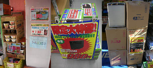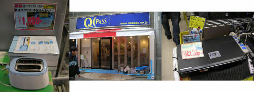 秋葉原他での巡回151122買い物中に気になったものです・・1.懐かしいポップアップトースター・・VERSOSの新品税抜き1980円。外はサクサク!中はふんわり!・・ちょんと焼けました、スタッフでおいしくいただきました・・とのこと・・(パレットタウン)2.QCPASS跡地・・工事していましたが・・どうやら「ピロピロ麺屋」というラーメン屋さんが入ったようです。11/25水にプレオープンで先着100名無料試食、11/26木よりグランドオープンとのことです・・(元QCPASS)3.Panaのブルーレイレコーダー、DMR-BR550・・AC・B-CAS付き、リモコン無しですが・・税込み10800円・・お安い・・(U&Jmac)1.CalDigitの外付けHDD、VRmini1000GB・・2.5インチSATA500GBx2・・AC付き、FW800・400x各1、E-SATAx1、USB2.0x1・・動作確認済み、通常価格税込み9800円が5800円に値下げ・・(アールガーデン)2.Supermicro製M/B搭載サーバー、X7SPA-HF・・AtomD510 1.66GHz/2GBMEM/OS無・・BIOS起動確認のみのジャンク・・特価税込み4800円・・(アールガーデン)3.例のFUJITSUの省スペースの小型デスクトップ型シンクライアント。FMV-TC5230・・付属品無しの本体のみ・・税込み1980円が・・売れないようで980円に値下げ・・昔は飛ぶように売れましたが・・(アールガーデン)1.メッセージファン・・最大20文字&20パターンの連続表示ができるそうです・・あちこちでこの手の扇風機を見かけますねぇ・・もう寒くなってきているのにこの付加価値で引っ張りますねぇ・・(icon)2.Transcendの4GBMicroSDHC・・税込み199円・・スピードはわかりません・・安いことは安い・・のですがジャンク扱いなので保証は無い・・(森のジャンクショップ)3.HTCのJ/Z321E/ISW13HT用のBT、BK07100・・3.8V/1950mAh・・2個で税込み1000円・・もぷ少しお安いと・・保証無しですが新品そうなので大丈夫でしょう・・(森のジャンクショップ)