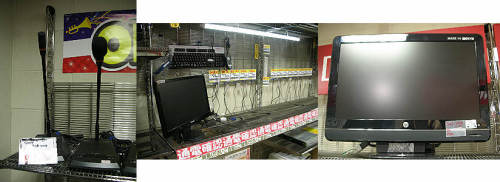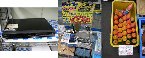※先週の秋葉出動後から・・風邪をひいて悪化・・今日はとても出動できずです・・ 秋葉原他での巡回151205買い物中に気になったものです・・1.NECのi7液晶一体型PC、VALUESTAR G タイプW GV247A/BS PC-GV247ABAS・・Corei7 2.2GHz/4GBMEM/2TBHDD/BD-R XL/-RE XL・・フルHD23インチ/Win7homePre64/3波チューナー/B-CAS欠・・で税込み59800円・・(じゃんぱら5号店)2.今週は、大部分が保証付き中古品のDVDプレーヤー関係・・ちょっとお高め・・(セルスターR)3.まずはジャンク扱いのDVD内臓コンポ本体のみ・・パーツ取り向け・・とはっきり書かれていますので・・結構手ごわいかと・・?税抜き300円・・(セルスターR)1.こちらは、フルセグ内臓9インチDVDプレーヤー、PDSG-9・・展示し用品のちゅうこ、付属品全揃い、ミニB-CSももちろん付属・・とのことで税抜き4980円・・まぁ安いかも・・(セルスターR)2.こちらはAiVVのツインモニター9インチポータブルDVDプレーヤー、RV-905PDVD2・・付属品はほとんど揃い・・動作OK・・税抜き7980円・・(セルスターR)3.モリタの消火器・・10本入りのダンボールが詰まれていましたが・・まだ値札が付いていません・・モリタといえば消防関係ではトップメーカーかと・・さtえどういう値付けになるのでしょう・・?(セルスターR)1.これは、フルセグ9インチTV内臓DVD/CDコンポ・・FL-D9FSWH・・地デジ・ワンセグ対応・・中古品ということで動作OK?・・税抜き6980円・・入り口近くに正常品が並べられていました。お店の国は不具合品が積まれていましたが・・まだ値付けがされていません・・(セルスターR)2.DVD内臓ミニコンポ・・付属品そろいの動作品?の中古品・・税抜き3980円・・これは先ほどのジャンクの動作品のようです・・(セルスターR)3.バッファローのHDMI切り替え器・・税込み950円・・良さそうな感じですが・・ちょっとお高い・・(MOQMOQ)