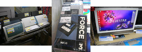秋葉原他での巡回151219買い物中に気になったものです・・ 秋葉原他での巡回151219買い物中に気になったものです・・1.CanonやFujitsuのドキュメントスキャナーが続々・・いずれも通電確認のみで保証なし・・それでも税抜き4800~7980円・・やっぱり結構お高い・・(U-SHOP2F)2.各社90GBSSD・・税込み4980円・・中途半端な容量ですが・・ちょっと割安・・?(じゃんぱら元コンビニ)3.例のNECのi7液晶一体型PC、VALUESTAR GタイプW GV247A/BS PC-GV247ABAS・・Corei7 2.2GHz/4GBMEM/2TBHDD/BD-R/RE/フルHD対応23インチ液晶/Win7home64/3波チューナー・・税込み59800円から5000円引き・・欲しいですねぇ・・(じゃんぱら5号店)1.SHARPのブルーレイレコーダー、BD-HDS53・・320GBHDD・・税込み14800円・・(じゃんぱら5号店)2.完全防水型36LEDライト・・水槽の中でデモをやっていました・・3.4mコードで屋外照明に便利・・税抜き1219円・・ちょっとお安くなった・・?(セルスターR)3.前回ジャンクコンポが税抜き300円で出ていましたが・・これはその付属品のスピーカーと思われます・・1本税抜き200円、2本セットで税抜き300円・・動作は確認済みとのこと・・(セルスターR)1.AIVNのフルセグ付き12.5インチ液晶ポータブルDVDプレーヤー、FL-125・・動作OKで、miniB-CAS付ですが、が取り説とBTなしのため税抜き6980円・・これは良さそうです・・(セルスターR)2.例のTMYのラジオ付きLED懐中電灯・・3灯LEDライト/AM・FMラジオ・・税込み500円・・杉元のジャンクは幾らでしたっけ・・?(秋葉特区)3.お買い得!!ボタン電池コーナーがしっかりできていました・・各種数に違いはありますが1シート100円・・ここに来れば大体揃いそう・・(秋葉特区)