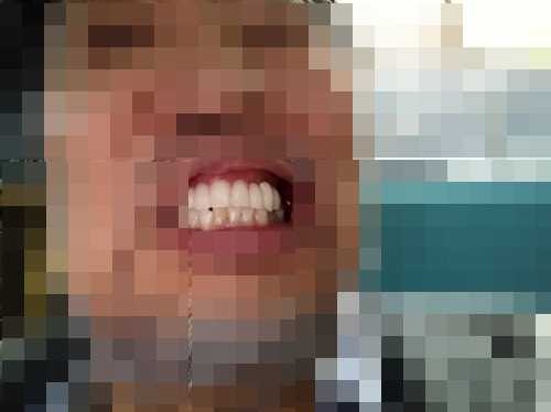 03/05 左上の3番の抜歯の予定だったのですが、歯肉を下げ、削っていくと何とか台として残せそうな可能性が出てきたので、仮にフタをして、後日根幹治療の専門医に見てもらうことになった。仮歯と下げられた歯肉との間に隙間ができ食べかすが詰まりつつありますが、うがい程度にとどめ、歯間ブラシや歯磨きは控えるようにとのことです。三日の抗生剤服用と、痛い場合の鎮痛剤をもらいました。09:00開始で終わったのは10:50を過ぎていました。3番~6番にかけ歯肉を下げるため、縫合を行っています(黒く見えるのが縫合に使われた絹糸)。