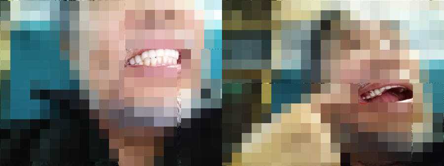 02/15 上の入れ歯(左右の7:8番)を除く左6番から右6番までをすべてブリッジにすることになった。前回の話し合いで、左右別々の部分入れ歯にするには土台が少なくて将来もたない可能性があること、インプラントを一部入れて部分入れ歯を支える方法とインプラントをかなり入れて、全てブリッジにする方法は、歯周炎になる可能性が高くメンテナンスが難しいということ。そこで先週の結論は上記のようになった。そこで左6番から右6番までの長いブリッジを支えるために、上の歯で唯二つ虫歯でない左右1番の前歯を泣く泣く削り土台として、前回採って作った仮ブリッジをはめてみる。仮のせいもあり、裏に支えを少し盛ってあるのか、ややしゃべりにくい。ついで入れ歯を入れると完全にしゃべりはフニャフニャに・・。仮ブリッジは仮接着してるので、発音練習はがんばってやるしかない。入れ歯の方は食べる時だけで良いということなので、家で食べる時だけつけることに。1.上の仮のブリッジ・・下の歯に比べて妙に白く綺麗な歯列2.見にくいですが、入れ歯をすると奥に2本歯ができます。