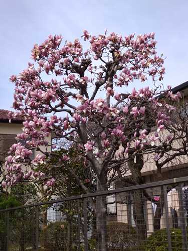 先日の梅についで、今日は歯医者に行く途中に見かけた見事な紫木蓮です。ちょっとピークを過ぎて散り始めていますが、綺麗にプロの手で剪定されています。