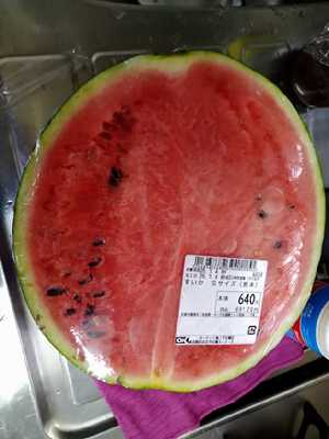 1個目が若い?発育不良?なのかやや固くて期待外れに終わっていたので、食料の買い出しに行ったOKストアで半割の中玉スイカがあったのでゲット。一玉はないか聞いたが無いというので、ちょっと熟れた感じでしたが税抜き640円だったのでかいました。その半割以外は少し小さめだったので半割1個にしました。ラベルには『Sサイズ 熊本県産』とあります。ちょっと熟れ過ぎ気味でしたが、スイカらしい甘さで美味しかったです。半割ですぐ無くなりそうです。「画像倉庫が一杯になったので、続きはこちらで」と書かれたブログは、ヤフーブログが廃止されたため読めません。下記のアベマブログに引き継がれていますhttps://ameblo.jp/delivery0410195