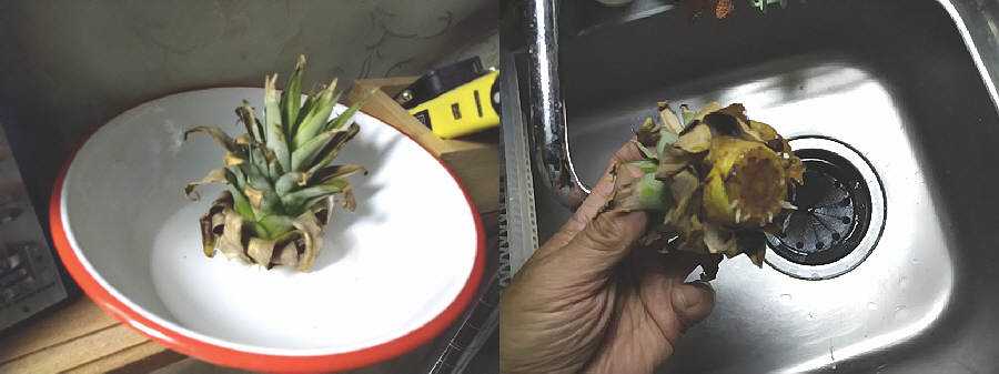 カミさんがパイナップルのヘタ?を栽培したら3年で実が育ったというネットの記事を見たよ・・というので面白そう!と思いやってみることに。カミさんはまさかやってみると言い出すとは思っていなかったみたい。最初水をしっかり替えなかったら枯渇して枯れ、2回目は果肉をしっかり残したら腐り気味に・・。カミさんがしっかりユーチューブ見てからやったら〜と言われ、しっかり見てから3回目挑戦。逆に果肉はほとんど無い状態で本当にヘタというより茎という感じまで切りそこらの容器に水を少し張り入れました。もちろん台湾パイナップルです。水替がおろそかになるので二階の流し付近に置き、朝歯磨きの後に水替をするようにしました。3回目だったので始めた日を忘れてしまいましたが、7/2の日に何気に裏を見たら根が少しづつ生えていて感動!とまぁ・・そういう訳で3年ということで先が長いので、また変化があったら報告します。頑張れパイナップル!1.こんな感じです2.根っこが生えていてビックリ「画像倉庫が一杯になったので、続きはこちらで」と書かれたブログは、ヤフーブログが廃止されたため読めません。下記のアベマブログに引き継がれていますhttps://ameblo.jp/delivery0410195
