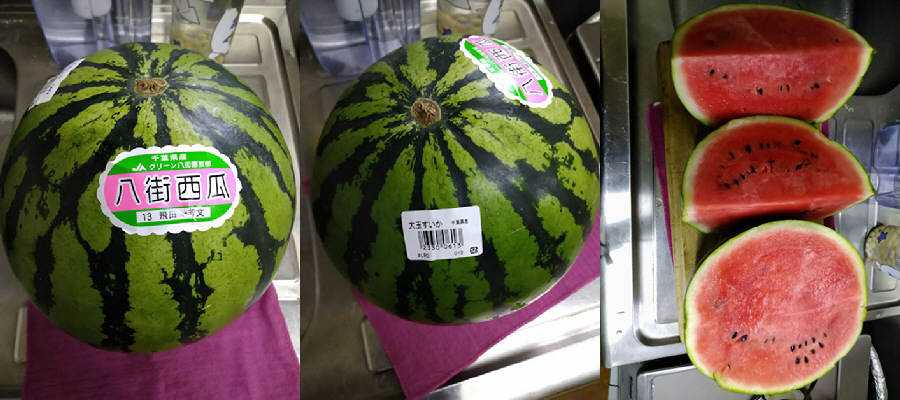 いい加減そろそろ出てくるかと上石神井の安売りのスーパーに行ってみると・・ありました!中玉の大という大きさで2種類、熊本産と千葉県産です。ちょっと迷いましたが、ちょっと大きい千葉産をゲット。税抜き1580円でした。レベルには『千葉県産八街園芸部八街西瓜 13 飛田芳文』『大玉 千葉県産 丸和』とあります。1/4はお袋にお裾分け。さて今度はどうでしょう?「画像倉庫が一杯になったので、続きはこちらで」と書かれたブログは、ヤフーブログが廃止されたため読めません。下記のアベマブログに引き継がれていますhttps://ameblo.jp/delivery0410195