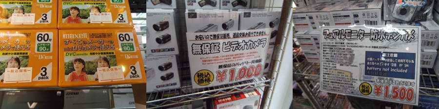 秋葉原他での巡回250511買い物中に気になったものです。1.miniDVDカメラ用のmaxellの60分テープ・・3パックで税込み900円。(セルスターR)2.無保証のビデオカメラ・・税込み1000円。バッテリーがダメなようです。(セルスターR)3.デュアルモニター防水デジカメ・・税込み1500円。バッテリーが膨張して使えないそうです。(セルスターR)1.新品の各種無線LANルーター。NECのAterm PA-WG2600HS2・・税込み3300円、NECのAterm PA-WX3600HP・・税込み9000円、ELECOMのWRC-X3200GST3-Bg・・税込み6000円、TP-LinkのArcherAX5400・・税込み8000円。(セルスターR)2.AMSの1.5インチ100万画素Gセンサー搭載ワンボディドライブレコーダー、AMS-D101・・税込み2480円。(セルスターR)3.AMSのルームミラー型ドライブレコーダー、AMS-D104M・・税込み2000円。(セルスターR)1.LED点滅防犯ダミーカメラ・・税込み500円(セルスターR)2.自動追尾スマホスタンド・・税込み980円。専用アプリで顔認識させると顔を追いかけてスタンドが回転するそうです。(セルスターR)3.OVERTIMEの14インチ地デジチューナー内蔵AndroidスマートTV、OT-PST14TE・・税込み10000円。ネット動画も見られるそうです。(セルスターR)「画像倉庫が一杯になったので、続きはこちらで」と書かれたブログは、ヤフーブログが廃止されたため読めません。下記のアベマブログに引き継がれていますhttps://ameblo.jp/delivery04101954