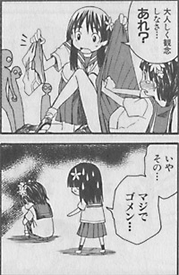電撃大王8月号読み終わった。1000ページを超え、ページ数ならアフタヌーンと大体同じぐらい。厚みは電撃大王の方がかなり厚い。よつばと / あずまきよひこWHITE ALBUM / 原作:AUAPLUS + 作画:阿倍野ちゃこ鉄道むすめ~Terminal Memory~ / 漫画:MASTUDA98 + ストーリー協力:明科実祐 + 原案:トミーテックさいたまチェーンソー少女 / 原作:桜坂洋 + 作画:鶯神楽我が家のお稲荷さま。 / 原作:柴村 仁 + 作画:松風水蓮 + キャラクターデザイン:放電映像ケメコデラックス! / いわさきまさかず魔法医猫といばら姫 / 森山大輔乃木坂春香の秘密 / 原作:五十嵐雄策 + 作画:深山靖宙灼眼のシャナ / 原作:高橋弥七郎 + 作画:笹倉綾人 + キャラクターデザイン:いとうのいぢとらドラ! / 原作:竹宮ゆゆこ + 作画:絶叫 + キャラクターデザイン:ヤスとある科学の超電磁砲 / 作画:冬川 基 + 原作:鎌池和馬 + キャラクターデザイン:灰村キヨタカシャイナ・ダルク ~黒き月の王と蒼碧の月の姫君~ / 原作:中山文十郎 + 作画:緋賀ゆかりGUNSLINGER GIRL / 相田 裕真月譚 月姫 / 原作:TYPE-MOON/「真月譚 月姫」製作委員会 + 作画:佐々木少年BLOOD ALONE / 高野真之Venus Versus Virus / 鈴見 敦CHAOS;HEAD / 原作:ニトロプラス×5pb. + 作画:すみ兵電撃テンジカーズ / 古賀亮一デウスXマキナ / 烏丸 渡ef - a fairy tale of the two. / 雅 樹里 + 原作:御影・鏡 遊車輪の国、向日葵の少女 / 原作:あかべぇそふとつぅ 作画:宇佐美 渉マブラヴ オルタネイティヴ / 原作:アージュ + 作画:蒔島 梓Sweet My Sisters ぴゅあ ぴゅあ / よし☆ヲJINKI -真説- / 綱島志朗アリソン / 原作:時雨沢恵一 + 作画:晴瀬ひろき + キャラクターデザイン:黒星紅白乙女はお姉さまに恋してる / 原作:キャラメルBOX + 作画:あらきかなお星の海のアムリ / 原作:米たにヨシトモ(region free) + 作画:稲瀬信也天元突破グレンラガン / 森 小太郎 + 原作:GAINAX + 監修:中島かずき森口織人の帝王学 / 原作:おかゆまさき + 作画:真田 鈴電撃ネコミミ侍 / 箱崎あきらでじぱら / 高木信孝苺ましまろ / ばらスィースーパーロボット大戦OG ディバイン・ウォーズ / 原作:SRプロデュースチーム + 監修:寺田貴信(バンプレソフト) + 作画:木村明広となりのだんな様 / 野々原ちきティンクル☆くるせいだーす / 原作:Lillian + 作画:有馬 侭つぐみちゃん / 猫屋敷ねこ丸機神大戦ギガンティック・フォーミュラ / 原作:GF + 作画:岡 昌平ダークウィスパー / 山下いくと百合星人ナオコサン / kashmir次号から連載の原作:倉田英之 + 漫画:鳴子ハナハルの漫画の紹介漫画付録に電撃大王4コマ。連載陣ほかが2~4ページ程度の4コママンガを書いており、なかなか豪華。Gunslinger Girl4コマは普段のシリアスとは違うギャグでなかなか良いです。巻頭にたかはし智秋のインタビュー、図書館戦争のDVDの記事で植田佳奈インタビュー、巻末に能登麻美子をはじめとする乃木坂春香の秘密のキャストインタビュー。すべてカラーで写真つき。BLAD ALONEのあとにドラマCDのキャストインタビュー。こちらは写真があるけど白黒。魔法医猫といばら姫は読みきり。WHITE ALBUM、鉄道むすめ、さいたまチェーンソー少女は新連載。つぐみちゃんてのは読みきり?新連載?乙女はお姉さまに恋してる、となりのだんな様、ティンクル☆くるせいだーすは最終回。なりのだんな様は好きだったけど、妙に地味だったからなぁ・・・。ティンクル☆くるせいだーすが後はゲーム本編でと物凄い寸止め感。焦らしプレイか。BLOOD ALONEでレディが下着姿で表れる夢を見て、その後に本人が現れるとか物凄い居心地悪いね。レディは年齢のわからない外見してるけど魔女だし相当な歳なんだろうな。サイノメなんかもエロイ格好が多いけど只のロリ漫画ではないのだよ。とある科学の超電磁砲本編でも4コマでも俺の初春活躍してるな。アヌタヌーン8月号、電撃大王8月号、これだけ覚えるSPI高得点のコツ購入http://plaza.rakuten.co.jp/densen/diary/200806290000/電撃大王読み終わったhttp://plaza.rakuten.co.jp/densen/diary/200805300001/電撃大王 2008年 08月号 [雑誌]出版社:角川グループパブリッシング発売日:2008年06月27日サイズ:B5楽天ブックス商品コード:16475この雑誌の新刊が登録されたら新着メールを通知する※新着メール登録ページの「登録名」に商品コードが表示されますが、不具合ではありませんのでご注意下さい。最先端コミック世代の超高画質コミック誌この商品の関連ジャンルです。 ・雑誌> コミック、アニメ> 青年楽天ブックス¥579
