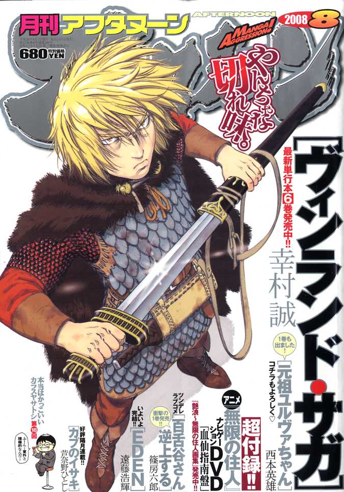 アフタヌーン 8月号読み終わった。ヴィンランド・サガ / 幸村誠元祖ユルヴァちゃん / 西本英雄ああっ女神さまっ / 藤島康介プ~ねこ / 北道正幸 おおきく振りかぶって / ひぐちアサ珈琲時間 / 豊田徹也無限の住人 / 沙村広明カブのイサキ / 芦奈野ひとし百舌谷さん逆上する / 篠房六郎ヒストリエ / 岩明均ぢごぷり / 木尾士目ハックス! / 今井哲也臨死!!江古田ちゃん / 瀧波ユカリもえタイ / 杉基イクラ愛読者ボイス選手権 超拡大版 / カラスヤサトシ爆音列島 / 高橋ツトムザリガニ課長 / そにしけんじ宙のまにまに / 柏原麻美ラブやん / 田丸浩史オクターヴ / 秋山はるからん / 木村紺スピリット魂 / 秋元こうじヴァムピール / 樹なつみハトのおよめさん / ハグキセラフィック・フェザー / 原作 武田俊也 + 漫画 うたたねひろゆきナチュン / 都留泰作GUN SMITH CATS BURST / 園田健一トライアルライド / 原作 魚住青時 + 漫画 小林知恵子シリーズ呪街第11話 呪街VI / 惣本蒼吉田家のちすじ / 中島守男EDEN / 遠藤浩輝リトル・ジャンパー / 高田裕三そんな奴ァいねえ!! / 駒井悠謎の彼女X / 植芝理一ミミア姫 / 田中ユタカファンシーGUYきゃとらん / くぼたまこと大江戸ロケット / 漫画 浜名海 + 原作 中島かずきるくるく / あさりよしとおチノミ / 吉永龍太ベントラーベントラー / 野村亮馬付録に無限の住人のDVD。アニメ化に際して作者やキャストらのインタビューなんかが収録されてる。さとりにゃ新連載のベントラーベントラーは四季賞出身の作者によるもの。宇宙人が来訪して住み着いているのが割りと当たり前っぽくなっている世界で、やっぱり地球人と宇宙人とじゃ感覚がずれているところに面白みを見出す感じか。セラフィック・フェザーとEDEN、チノミが最終回。セラフィック・フェザーとEDENはどちらも長い長い連載だっただけに、結構なんだったのか解らないままの設定があるような。。。チノミはホラーというかミステリーというか、とにかく暑苦しい絵柄で強力な勢いがあった。マザクはAliceの方が実年齢に近いはずだよな・・・なぜ外見年齢がスナオを追い越したんだっけ?次号からやっとアコニー復活。それにしてもアコニー休止してハツカネズミの時間を連載していた冬目景はかわってるなぁ。百舌谷さん逆上するの樺島君はぶっちゃけたなぁ。小学生にしてあのお師匠様が浮かぶ精神は只者じゃないな。ハックス!の主人公の人の話を聞けないところとか、優先順位がわからないところとかイラっとくるわ。アフタヌーン 7月号購入http://plaza.rakuten.co.jp/densen/diary/200805240000/月刊 アフタヌーン 2008年 08月号 [雑誌]出版社:講談社発売日:2008年06月25日サイズ:B5楽天ブックス商品コード:13871この雑誌の新刊が登録されたら新着メールを通知する※新着メール登録ページの「登録名」に商品コードが表示されますが、不具合ではありませんのでご注意下さい。迫力のボリュームでお届けする、マンガ好き読者のためのコミック誌最新単行本6巻発売中!!『ヴィンランド・サガ』ー幸村誠/1巻も出ました!コチラもよろしく『元祖ユルヴァちゃん』ー西本英雄/衝撃の1巻発売!ツンデレコメディ『百舌谷さん逆上する』ー篠房六郎/超付録ーアニメ「無限の住人」ナビゲーションDVDこの商品の関連ジャンルです。 ・雑誌> コミック、アニメ> 青年楽天ブックス¥680セラフィック・フェザー(9)アフタヌーンKC 著者:うたたねひろゆき/武田俊也出版社:講談社サイズ:コミックページ数:234p発行年月:2005年03月この著者の新着メールを登録するこの商品の関連ジャンルです。 ・本> コミック> その他楽天ブックス¥539遠藤浩輝短編集(1)アフタヌーンKC 著者:遠藤浩輝出版社:講談社サイズ:コミックページ数:229p発行年月:1998年04月この著者の新着メールを登録するこの商品の関連ジャンルです。 ・本> コミック> その他楽天ブックス¥530チノミ(1)アフタヌーンKC 著者:吉永龍太出版社:講談社サイズ:コミックページ数:1冊発行年月:2007年09月この著者の新着メールを登録するこの商品の関連ジャンルです。 ・本> コミック> 青年> 講談社 アフタヌーンC楽天ブックス¥559