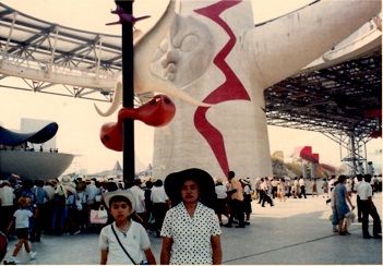 今は亡き母と一緒に「太陽の塔」の前で記念撮影していました。