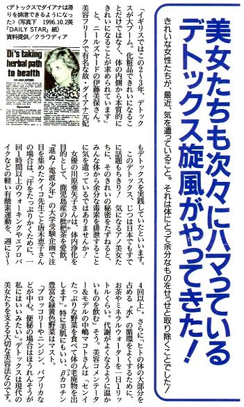 記事には故・ダイアナ元妃もデトックスをしていたとありました。