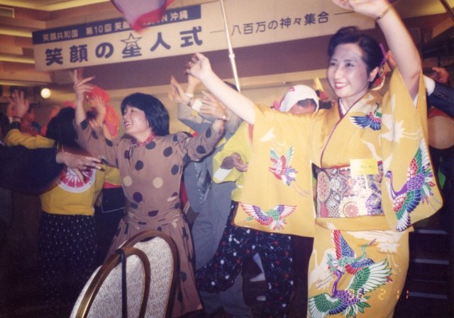笑顔共和国の福田純大統領の沖縄での記念イベント「笑顔の星人式」に