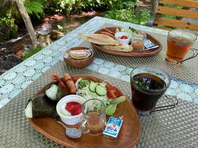 小川のそばのテラス席もあり、この日はモーニングしました。