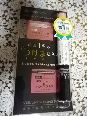 こんばんは(*´▽`*)今日はマスカラ使ってみましたよキングダムさんのツーステップマスカラですまずは、このマスカラについてですStep:1 下地で上向きカールKeep・カールメモリーポリマー配合(上向きカールが続きます)・白くなりにくい半透明タイプまつげを保湿・保護する4つのトリートメント成分配合ヒアルロン酸Na・パンテノール・オタワ人参根エキス・加水分解シルクStep:2 ボリュームアップ&ロング・濃密なゲル&ワックス配合まつ毛1本1本に密着し、濃く太く仕上げます。・ロング繊維配合 まつ毛がグングン伸びたような仕上がりになります。汗・皮脂・水に強いウォータプルーフタイプ自分の目が上手に撮れないのでつけまで試してみました 自まつ毛の方がボリュームアップ効果&カールアップ効果をバッチリ実感できました下地付きのマスカラっていいですよね。私はマスカラ大好きなんです。ボリュームたっぷり出したいので、いつも何種類かのマスカラを重ねて付けてます。このマスカラは1本で下地とマスカラが一体化されているのでポーチもかさばらなくって便利です下地のおかげで、まつ毛も傷まないしウォータプルーフなので、雪で濡れたりしてもパンダ目にならなかったです雪でパンダ目になっちゃう事結構多かったのでこれは、かなりポイント高いなぁ( *´艸`)@cosmeでもマスカラ下地・トップコート部門で1位を受賞されたマスカラなんですよ。(2012.3/1~5/31)すご~いプチプラなのに優秀なマスカラだと思いました(*´▽`*)キューティスさんのブログリポーターに参加中ですブロネットさんのイベントで頂きました。試させて頂いてありがとうございました。キングダム ツーステップマスカラはコチラからブロネットさんはコチラからいつも本当にありがとうございます皆様に感謝していますかなり嬉しいです(≧◇≦) ぽち感激です\(≧◇≦)/最後までご覧頂いてありがとうございました<(_ _)>