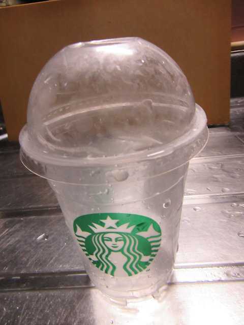 「フタ開けたらいけんよ!」と。なんだ、上に穴が開いてストローで飲むんだ。。