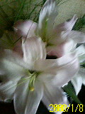 (お正月を過ぎて)やっと、花が咲きました(笑)。こちらはクリスマスのアレンジ…。 この花がすごく良かったから、お正月もゆりにしたんだけど、気温が低いせいか花が開くのに時間がかかりました。ちなみに、チューリップはまだ開いてません(笑)。これぐらい時間がかかるんだったら、共用できるかも…。クリスマスの花もまだまだきれいです。花瓶のゆりは、まだつぼみです。 ぽけもんに『マダツボミ』っていませんでした?