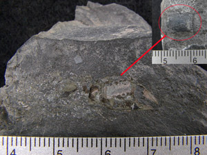 今回はスナモグリのはさみを取り上げます。この化石は瀬林で開催している化石発掘体験地で、平成19年5月の連休の時に参加者の方が見つけたものです。今回は大変珍しいものでしたので、寄贈していただきました。写真右上は平成18年に中里中学校の生徒が見つけたもので、通常はこのようにはさみの可動しない部分しか残りません。 スナモグリはシャコの仲間で現在でも砂や泥がたまるところに生息しています。最近、発掘体験地以外でもスナモグリのはさみが見つかるようになり、かなり広い範囲に生息していたことが分かりました。 さて、平成15年7月から始まったジュラシック・パーツは、今回で50回目を迎えました。この間、エビやカニなどの新種を含むいろいろな化石を紹介しましたが、これらはすべて神流町で産出した化石です。もちろん、神流町にはまだまだ新種化石や見つかっていない化石が埋もれているはずです。 皆さんも自分の中に埋もれている宝を見つけてみませんか?By 恐竜センター(佐藤)