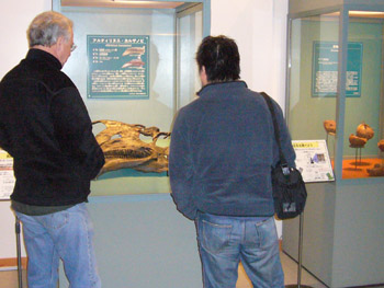 こんにちは、サウルスくんですぅ昨日、恐竜センターにジェイコブス博士と小林博士が来館されたですぅジェイコブス(Jacobs)博士はアメリカのサザンメソジスト大学の先生で、現在北海道大学に客員研究員として、来ているそうですぅ小林博士は北海道大学博物館の准教授で、ジェイコブス博士のところで、学生時代に恐竜を学んだそうですぅ2人とも世界各地で恐竜の研究をしている人たちなのですぅリニューアルした展示を褒めてもらえて、とてもうれしかったですぅ