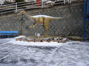 こんにちは、サウルスくんですぅ今朝の温度は-2度寒さに弱いボクにとってはすごく厳しい状況なんだけど、みんなからの問い合わせが多いので、頑張って化石発掘体験地に行ったですぅ 恐竜センターの前の道路は雪はなくって安心ですぅ~あれっ???化石発掘体験地まであと300mくらいのところは雪があるですぅ~~~ 駐車場も雪が残ってるですぅ 入り口は凍ってるところもあるですぅ 博士:サウルスくんや、こんなところで何をしてんるんじゃあっ、博士ぇ~、みんなが化石発掘のことを聞いてくるんで、現場を見にきたですぅ博士:今閉鎖しているんで、本当は入っちゃだめだが、そういう理由なら特別に見ていいぞありがとうですぅあれぇ?どこが化石発掘体験地なんですかぁ 前はこんな感じだったんだけどぉ~ 博士:雪が積もって、これでは発掘できないね 博士ぇ、いつから発掘できるんですかぁ~博士:5月には化石発掘体験を開始する予定だそうだよじゃあ、それまでは、リニューアルした恐竜センターで勉強するですぅ