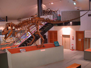 こんにちは、サウルスくんですぅ今日からリニューアル情報局では2010年1月から追加された標本を紹介してくですぅ恐竜センター別館2階に展示してあるタルボサウルスは平成11年(1999年)にやってきたモンゴル最大の肉食恐竜ですぅ一見したところ、ほぼ完全な骨格標本のようでしたが、実は展示されていない部分の骨や復元に誤りなどもあったですぅ今回はその改善のために、次のような変更を行なったですぅ1)首の周りの細い骨(頸肋骨)を追加2)肋骨が後方に傾いていたため、正しい角度に修正3)肩甲骨の位置が高すぎたため、正しい位置に修正4)叉骨(左右の鎖骨が癒合した骨)とお腹の部分にあるはずの骨(腹肋骨)が展示にはなかったので、アメリカ産のティラノサウルスを参考に製作・展示5)尻尾の下についている骨(血道弓)も展示にはなかったので、製作・展示このような改修により、タルボサウルスは腹部と尾の幅と厚みが増したことで重量感が出て、来館者の方々にはより正確なタルボサウルスの姿を見てもらえるようになったですぅ是非みなさんもこの違いをチェックしてみてほしいですぅ