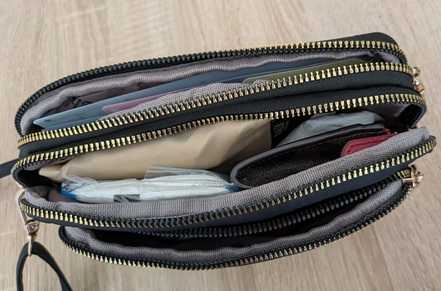 汚れも拭き取れるし、中にもファスナー付きポケットがあるので気が付くと近所の軽いお出かけはいつもこのポシェットを選択しちゃう。