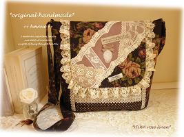 ふー・・・・(´∀`;)ゝ長い・・・・・長い時間が掛かってしまいましたがやっと完成です。+.゚ヽ(*´∀`)ノ゚.+。今回はショルダーbagに変身ショルダーbag・・・・お久しぶり?!お色がダーク系だからいっぱい飾っても甘すぎないと思い、お気に入りの*rose*レースたちをいっぱい飾ってみました(*´艸`*)イニシャルモチーフにはおリボンをチラッと添えて~***そして回りには、紅茶染めをした透かし*rose*レースのたっぷりギャザーをアクセントに~***ふた部分を開けると、中にはポケットティッシュ入れがついてます♪♪バックの中を開けなくてもサッと取り出しやすいと安心しちゃいます*^m^*反対側には、ちょっぴり賑やか*YUWA rose*たちのパッチポケットになってま~す(*^ー^*)b先日からお片付けも同時進行しているので生地探しにますます苦戦~今回は、中生地にも賑やか*rose*になってるんですよ~***ショルダー紐には、ほんの・・・・・ほんのちょこっとだケド、綿を入れてるんです^^あまりいっぱい入れちゃうと金具が通らなくなっちゃうのでほんのちょこっとダケ*^m^** * * * * * *12月もあともう少し・・・・・なのになのに雪があまり積もってない σ(・ω・*)…雪がいっぱいあるとウーン・・・・・って思うケド、ないとまた、冬じゃないみたいで変な感じです^^;でもでも、今日はさらさらですが朝から雪・・・降ってます^^もうちょっと、雪積もってくれると嬉しいなぁぁぁ***今日も素敵な1日になりますように♪本日は62位です**ランキング・・・・・・もう100位くらいに下がってると思ってたのでちょっぴり嬉しいです*^m^*年末の大片付けで、更新できずの日々ですが遊びに来てくださって本当にありがとうございます*^人^*応援くださって感謝いっぱいです♪♪ポッ**××××××××××××××××××××××××× * HP * *blog*ランキング *HP*ランキングこちらの*ランキング*にもポチッとお願いします♪*^ー^*×××××××××××××××××××××××××*handmade Auction***今年1年、ありがとうございました♪***^人^*お待たせいたしました。本日の癒されたいむの時間です♪お部屋改造計画・・・・・なかなか苦戦してます^^;意外と・・・・・意外と時間掛かるんですね~^□^;ゝ来年まで待ち越し予定です*汗*小物を飾るとまた素敵なお部屋になりますね*^ー^*b可愛いなぁぁぁ♪素敵な*rose*ですね*^ー^*b薔薇は癒されます♪♪以上。癒されタイムの時間を終了します♪^^